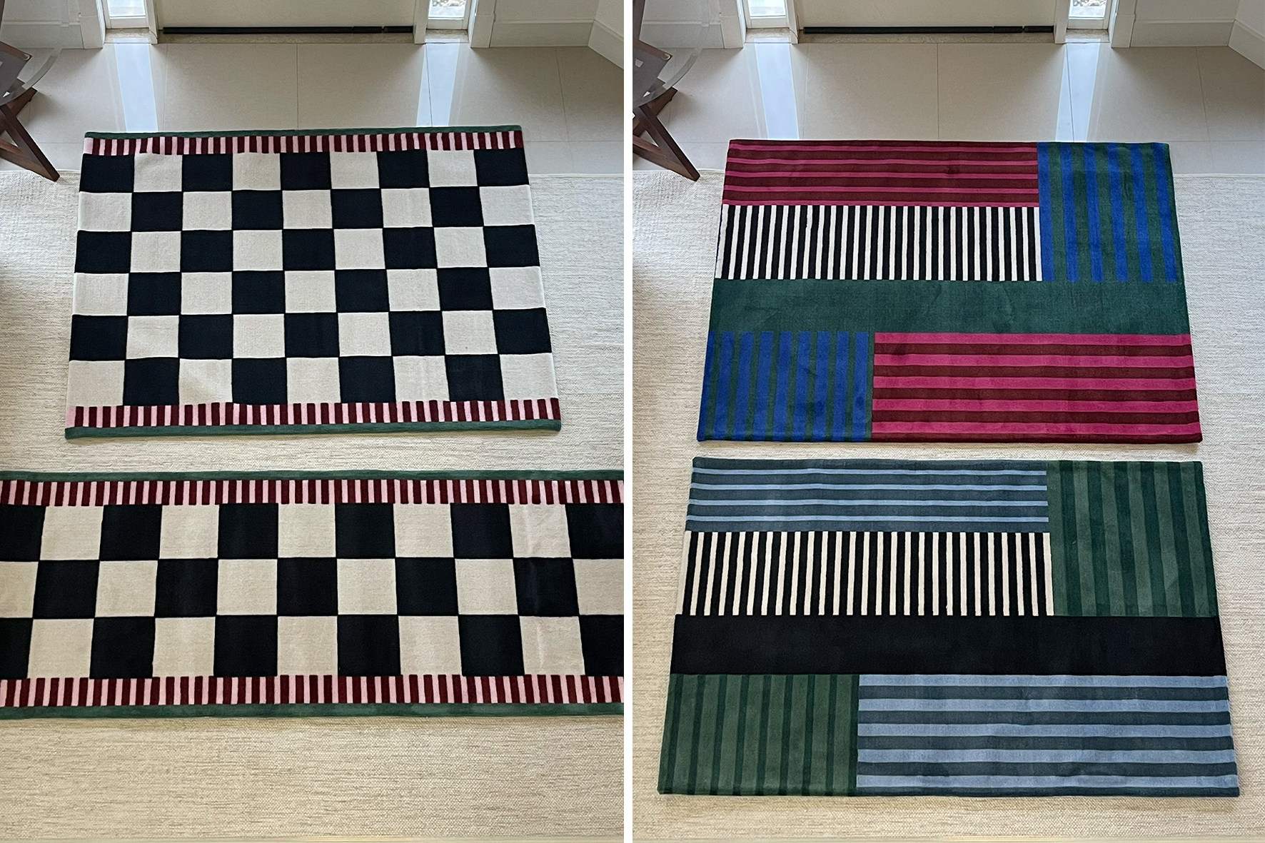 acima, exemplos de tapetes que adaptamos medidas e/ou cores.